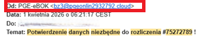 Oszuści wysyłają wiadomość z informacją o tym, że na naszym koncie PGE powstała nadpłata i niebawem otrzymamy jej zwrot. Wystarczy tylko podać dane, a środki zostaną zwrócone. E-mail wygląda bardzo profesjonalnie i łatwo jest w pośpiechu ucieszyć się z dodatkowych środków, wpisać wymagane informacje, nie wczytać się w szczegóły i nie zauważyć, że wiadomość przyszła z dziwnego adresu. Tymczasem jest to kolejna pułapka cyberprzestępców – próba wyłudzenia danych naszej karty płatniczej i przejęcia środków z konta.